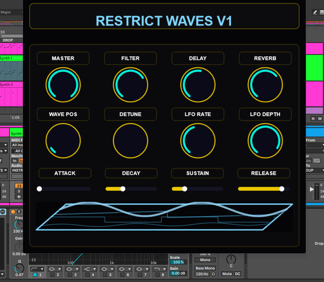 Restrict Waves is a simple Wavetable synth with a visualiser of the currently selected wave combination.